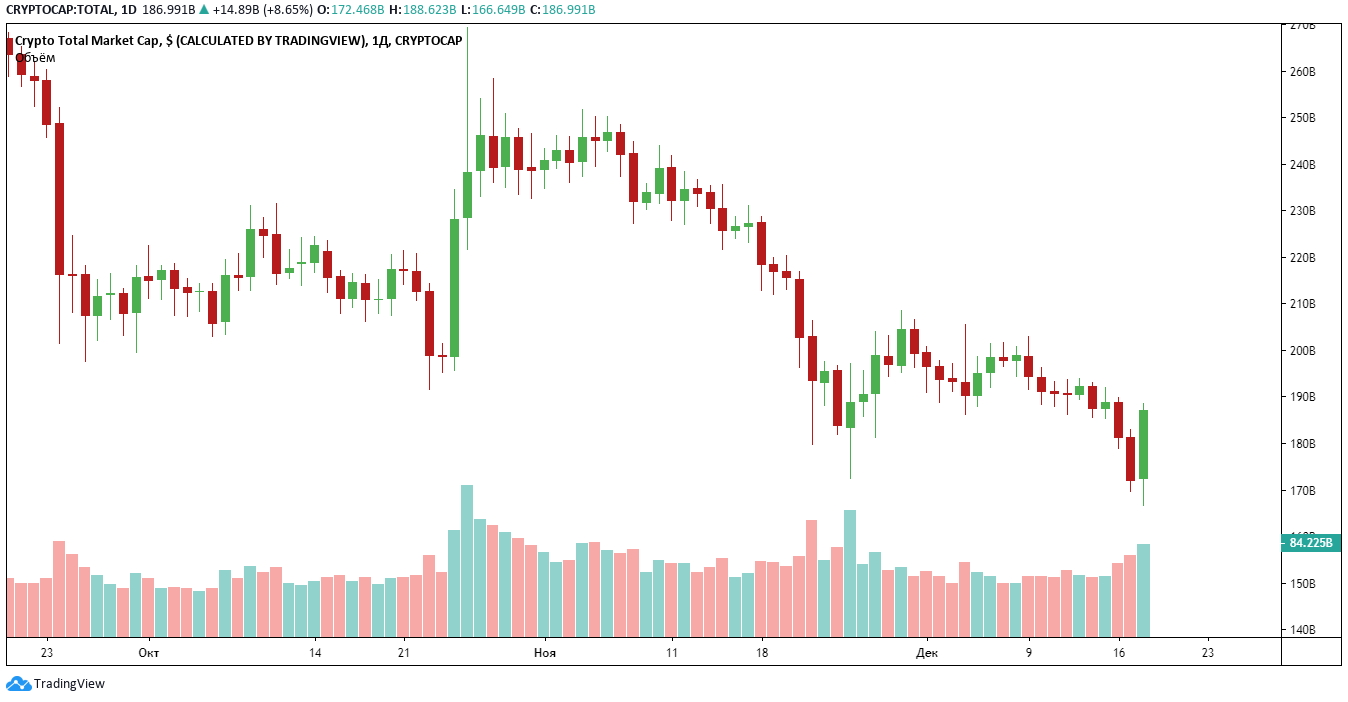 В последние дни капитализация рынка криптовалют упала более чем на $15 000 000 000. Конечно, это не самые большие оттоки капитала за всю историю существования криптовалют, но и не самые малые. Обычно изменения остаются в коридоре нескольких миллиардов.