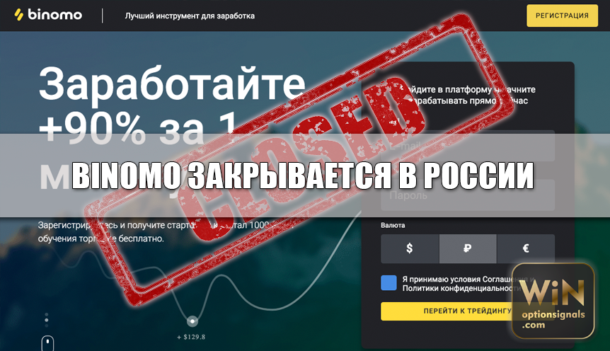 Еще один популярный брокер бинарных опционов объявил о закрытии регистраций на территории России. В след за такими популярными брокерами как IQ option, который закрылся еще в 2018 году и OlympTrade который объявил сначала о прекращении регистраций с территории РФ все в том же 2018 году, а позже и полностью закрылся на территории РФ, теперь о своем закрытии объявил такой популярный брокер как Binomo.