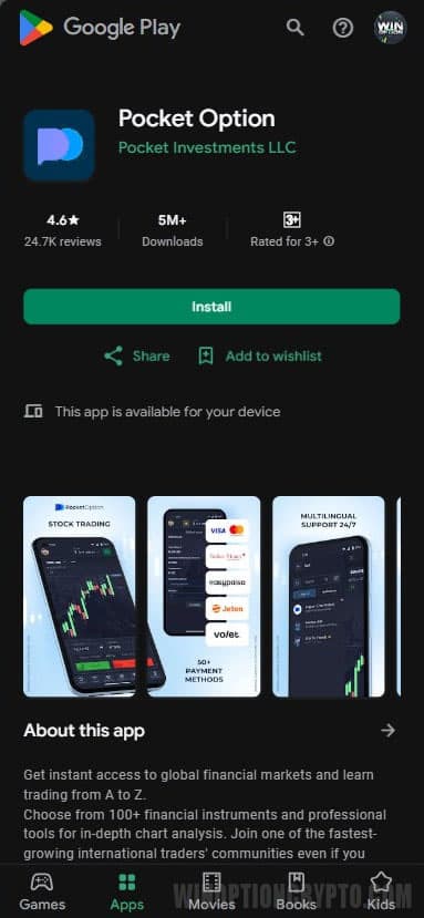 You can download the broker's software for trading binary options on a smartphone or tablet running Android and iOS using one of the buttons above.