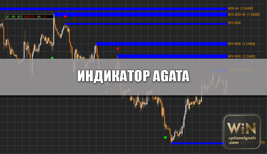 Индикатор для бинарных опционов AGATA основан на алгоритме, включающем в себя технический анализ, теорию Доу, прайс экшн и некоторые другие виды анализа. Благодаря такому количеству учитываемых данных индикатор строит уровни поддержки и сопротивления, и при подходе цены к этим уровням генерирует сигналы.