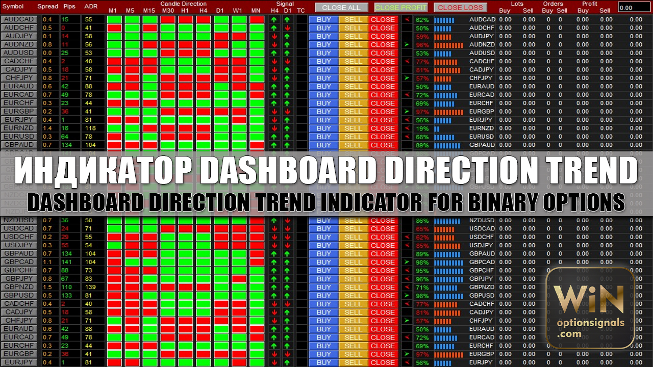 Индикатор для бинарных опционов Dashboard Direction Trend является довольно удобной панелью, в которой есть не только теоретическая информация, а и практическая. И если соблюдать все правила и совершать сделки только по тренду, то даже у новичка получится торговать бинарными опционами с прибылью.