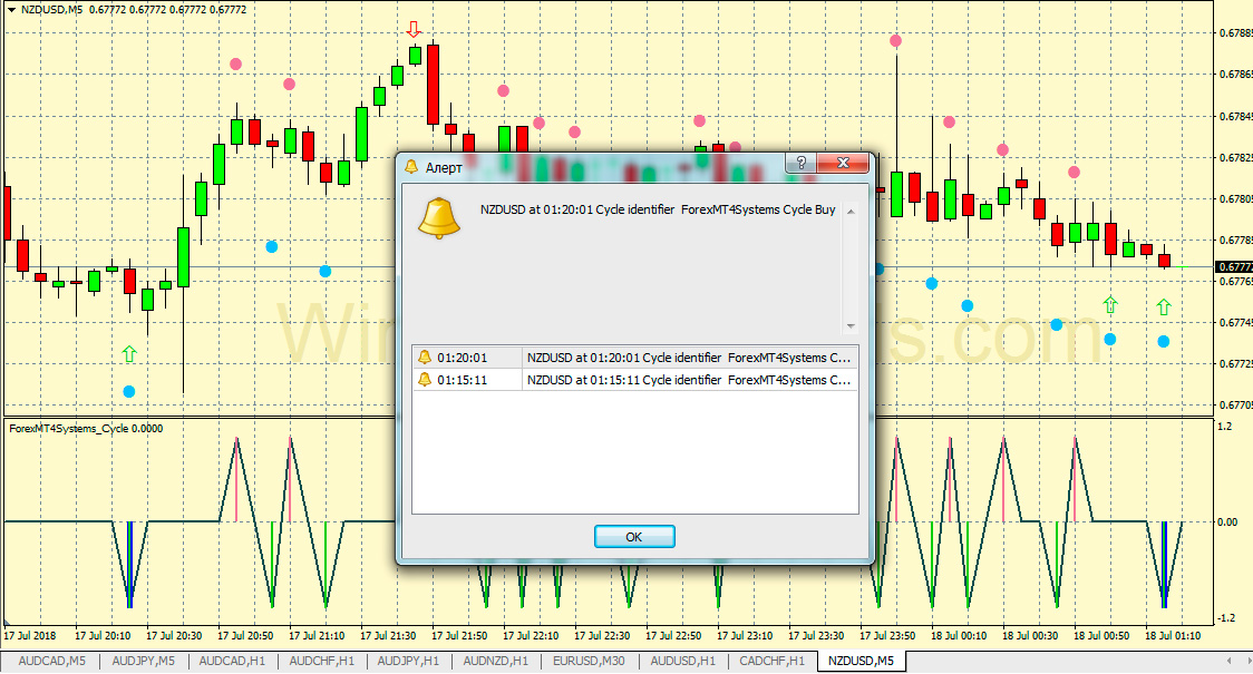 При этом доступна настройка индикатора таким образом, что он будет выдавать оповещения, сопровождаемые звуковыми сигналами. Хотя обращение к этому способу вынуждает держать постоянно запущенным терминал МТ4, если трейдер не хочет пропустить такого вида сигналы.