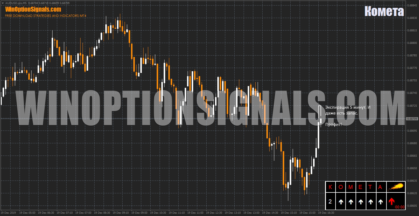 Индикатор для бинарных опционов Комета является сигнальным и не занимает много места на графике, тем самым позволяя дополнять его и создавать торговые стратегии на основе данного индикатора. Хотя этот индикатор был разработан, как полноценный инструмент, не требующий фильтров. Придерживаясь всех правил, у вас будет возможность получать до 80% положительных сделок.