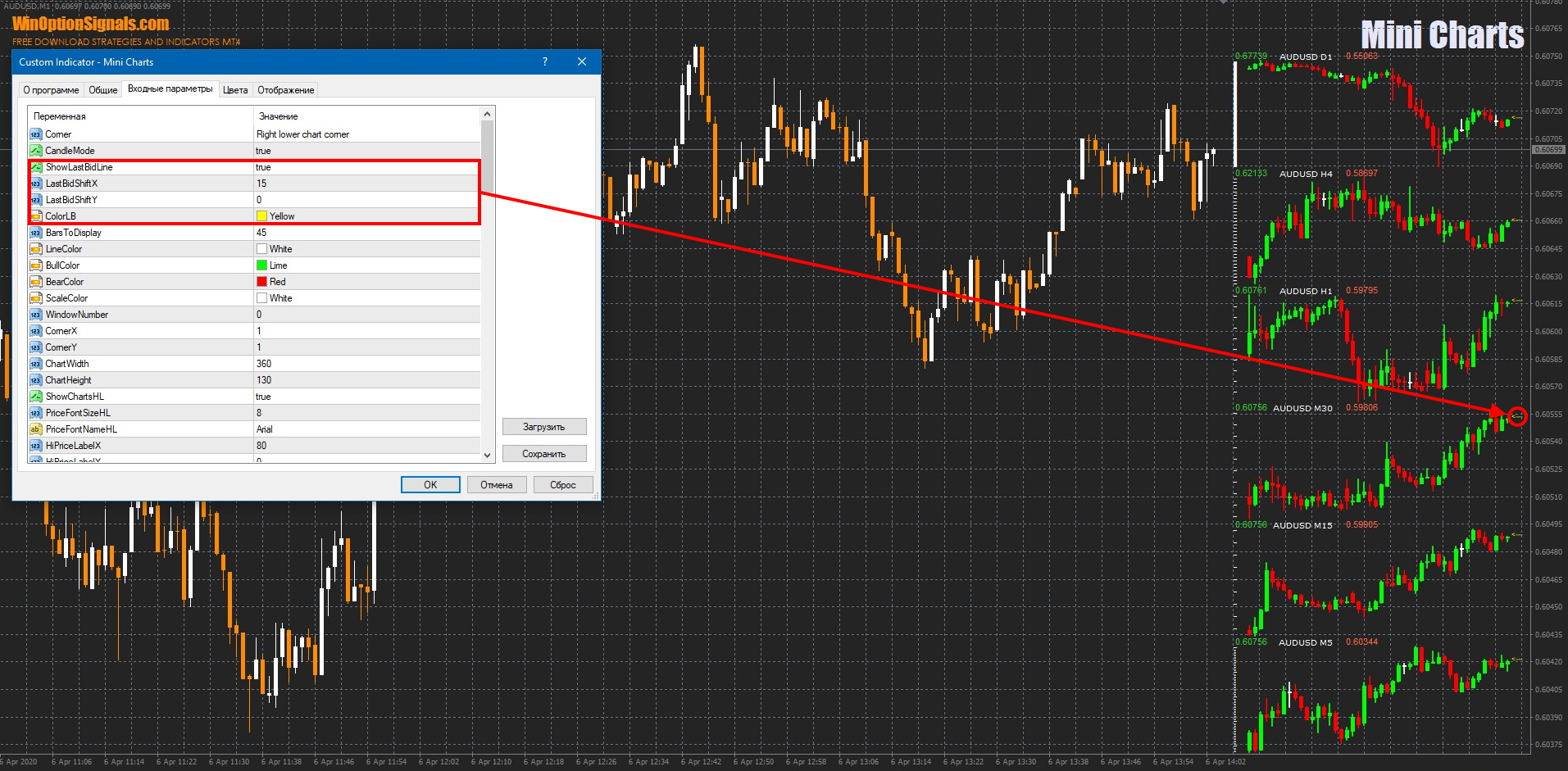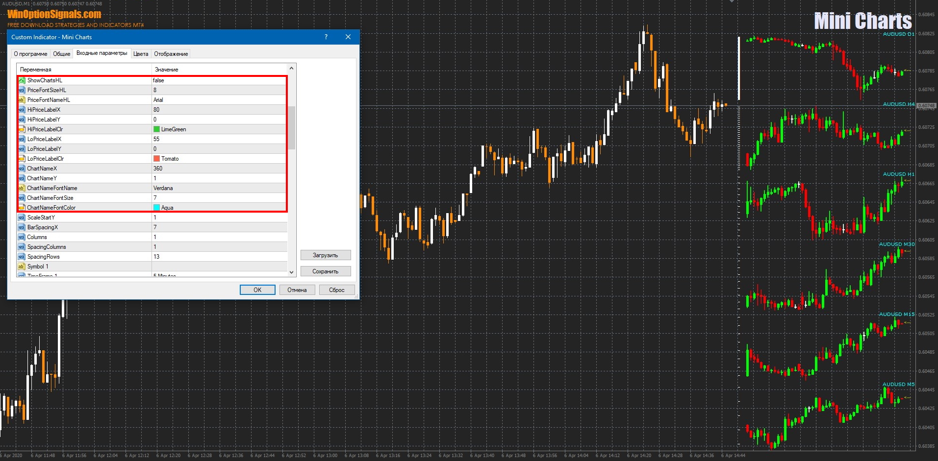 Индикатор Mini Charts имеет большой набор функций и настроек, что позволяет «подогнать» данный индикатор под себя и использовать с максимальной выгодой. И такой индикатор может оказаться в разы полезнее других, несмотря на то что он не дает никаких сигналов относительно торговли, зато является хорошим инструментом для анализа трендов.