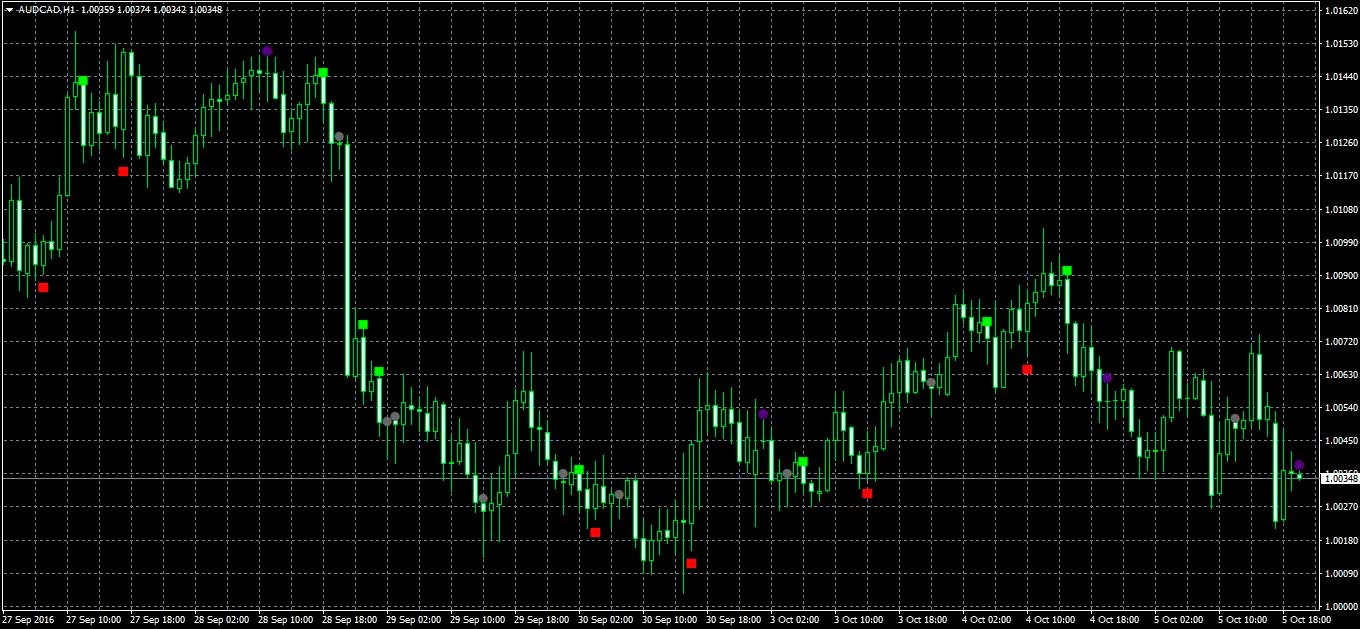 Данный индикатор показывает значительно меньше комбинаций и лучше виден на белой цветовой схеме терминала MT4.