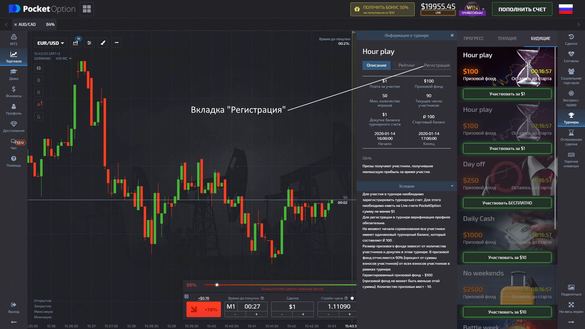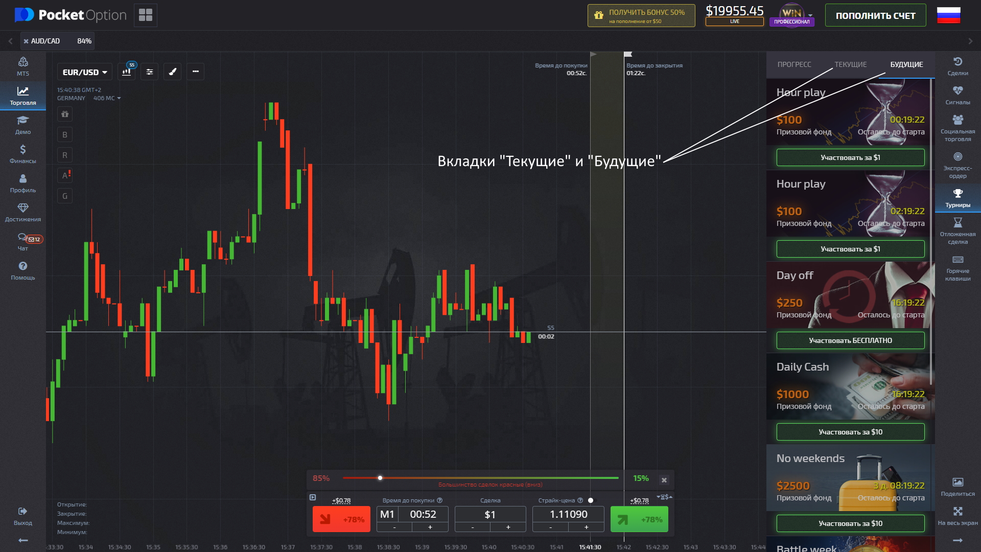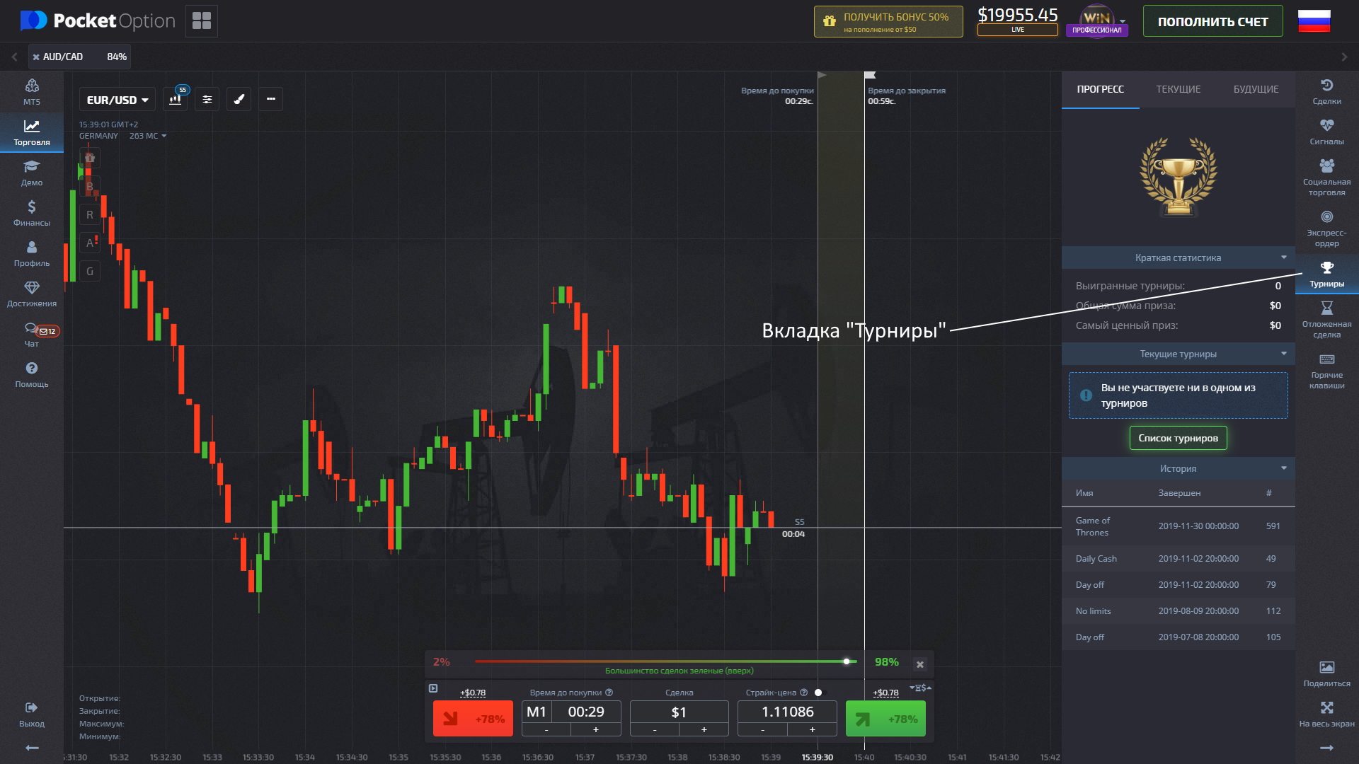 Как начать участвовать в турнирах у брокера бинарных опционов Pocket Option