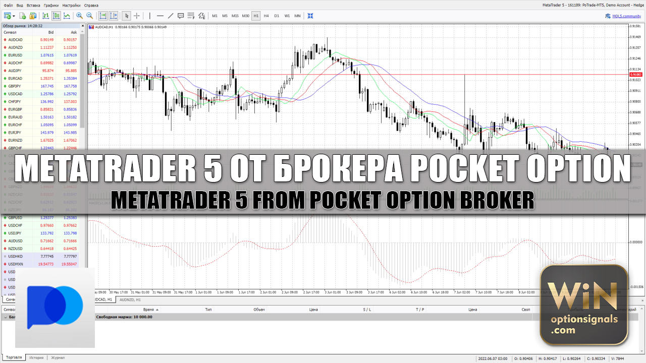 - Веб-терминал MetaTrader 5 от MetaQuotes у брокера Pocket Option;