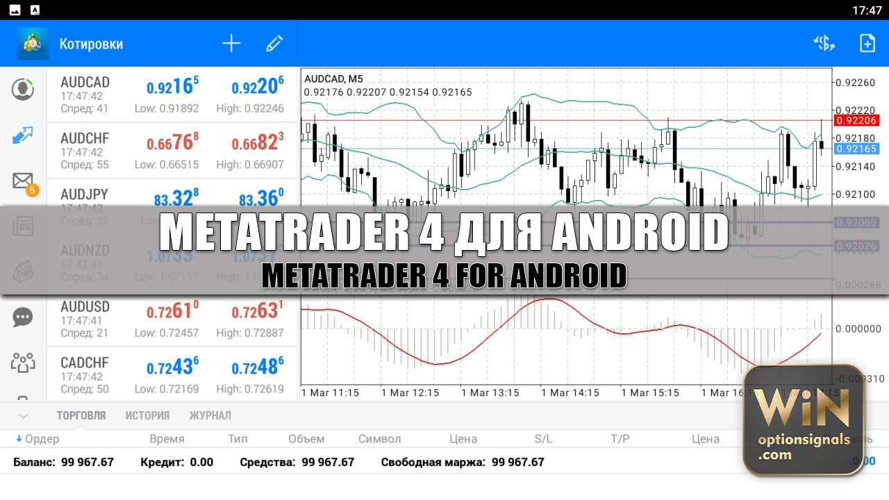 В связи с тем, что многие люди сегодня активно используют смартфоны, разработчики программного обеспечения, предназначенного для торговли бинарными опционами и на Forex, не смогли обойти вниманием такую тенденцию. Из-за этого, в частности, появилась мобильная версия MT4 для Андроид, которая предназначается для смартфонов и планшетов с этой операционной системой. С помощью MetaTrader 4 пользователи могут проводить анализ графиков и все время быть в курсе изменений на рынке.