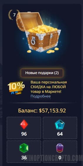 Вы можете активировать бонусы как за реальные средства, так и за накопленные кристаллы, которые начисляются за торговую активность. В этом же разделе можно применить один из промокодов, опубликованных на нашем сайте.