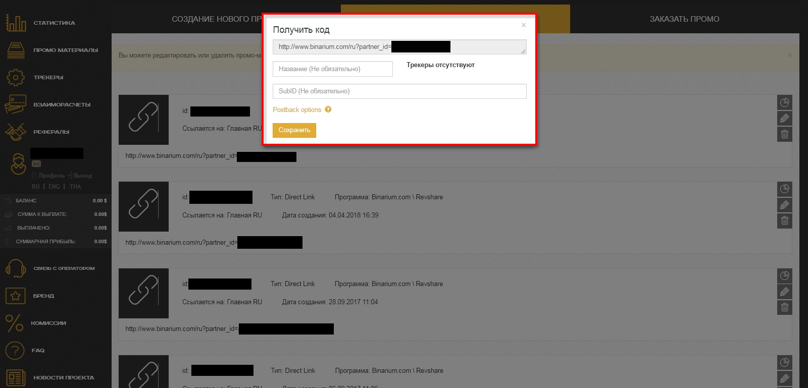 Для качественной рекламы брокера Bianrium предоставляются все необходимые материалы и инструменты. Но каждый промо-материал нужно будет настроить самостоятельно.