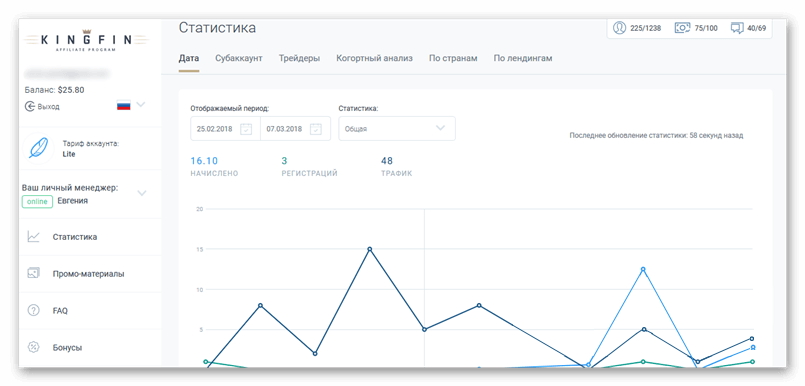 Кабинет партнера и анализ статистики в партнерской программе брокера Olymp Trade