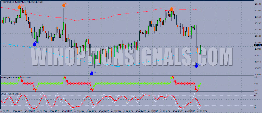 Forexsignal30 extreme – колебания, отображаемые в нижнем окне, что идет первым. Возникновение сигнала, инициируемого покупкой или продажей, приводит к образованию пиков.