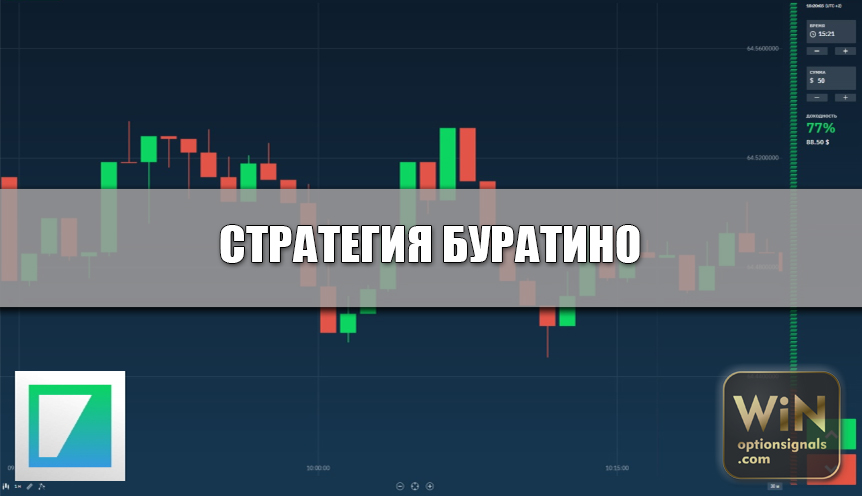 Название стратегии произошло из-за того, что сигнал на покупку формирует графическая фигура, внешне напоминающая сказочного персонажа. В данном случае головой «Буратино» является тело свечи, а носом — тень. Появление этой фигуры указывает на скорый разворот тренда. Чем длиннее размер тени, тем вероятнее смена тенденции. Данная стратегия для брокера Binarium отличается своей простой. Однако этот метод демонстрирует высокую эффективность в плане результативности сигнала.