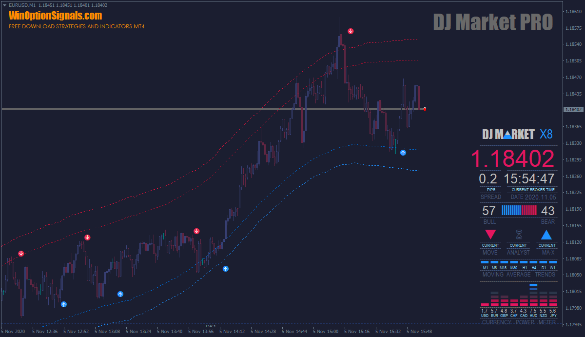 В стратегии DJ Market PRO предусмотрены и алерты, которые появляются в момент формирования стрелочек: