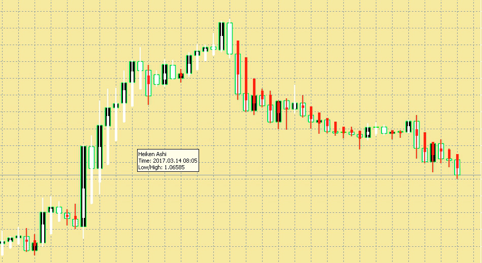 Модифицированные свечи накладывают на график торгового актива, для большего удобства и лучшего визуального восприятия.