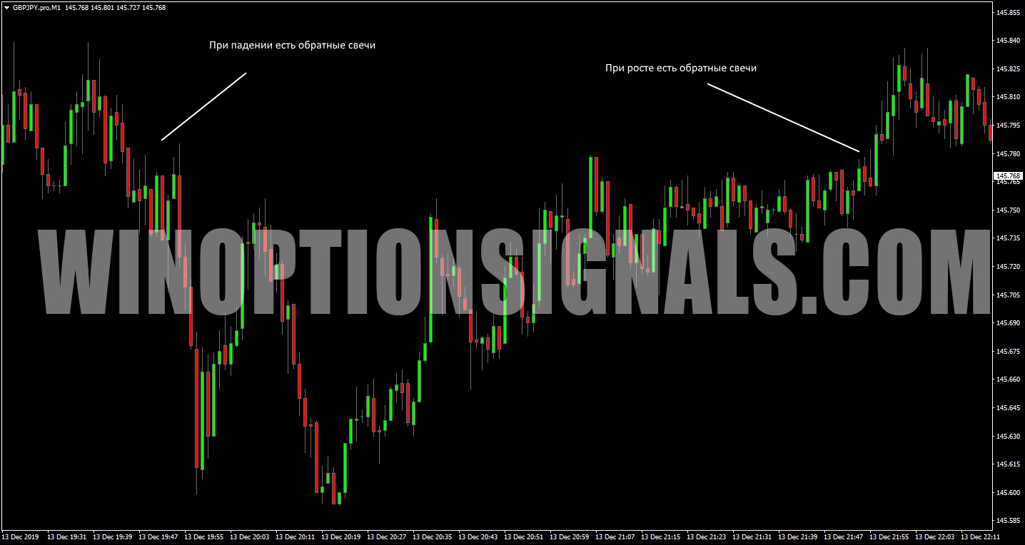 Проще говоря, при росте цены нередко появляются красные свечи, а при снижении – зелёные. Это наблюдение крайне полезно, так как позволяет использовать его в своих интересах.