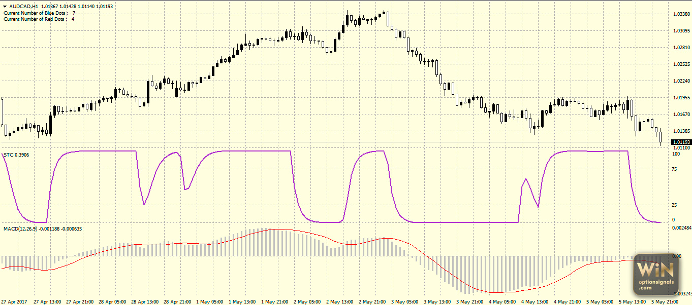 MACD обычно сильно запаздывает при определении точек входа. В это же время, STC замечает растущие и падающие тенденции достаточно быстро. Эта разница между сигналами индикаторов может быть большой.