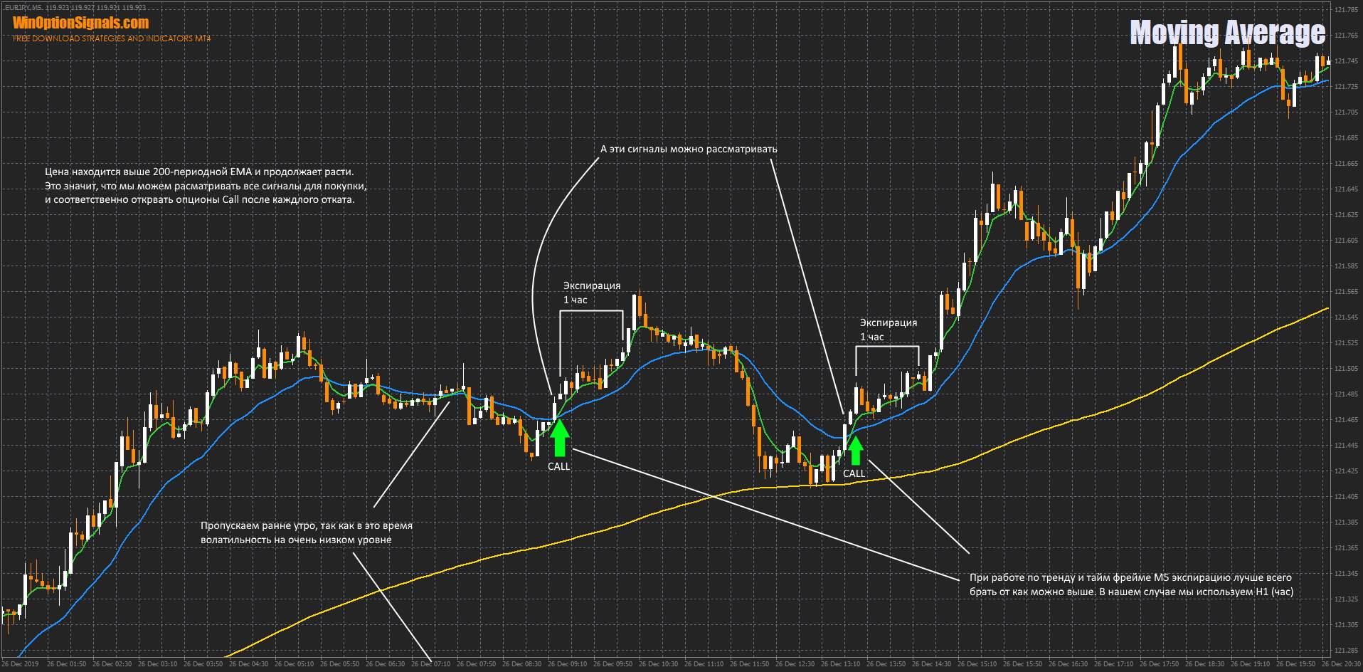 Стратегии торговли бинарными опционами, основанные на скользящих средних