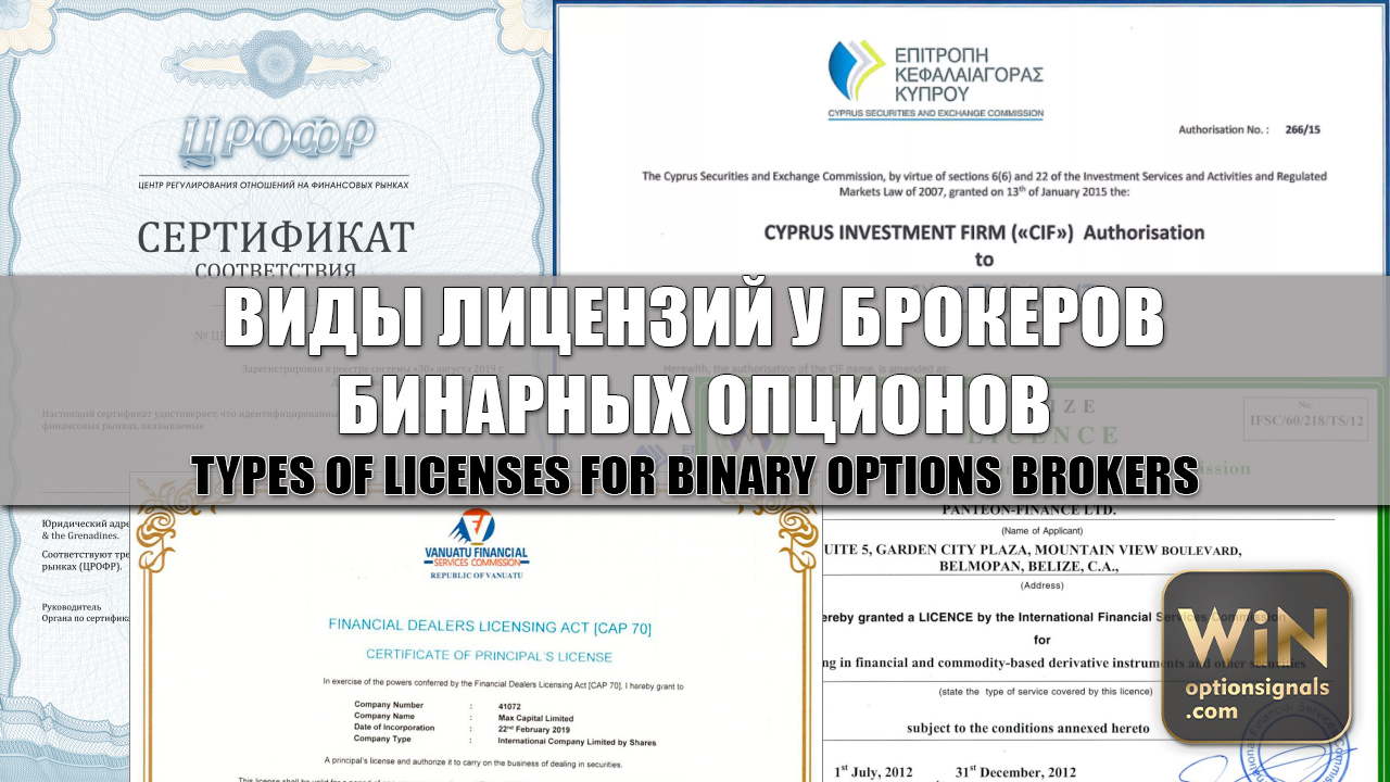 Однако лицензии брокеры бинарных опционов чаще всего получают от регулятора ЦРОФР или CySEC.