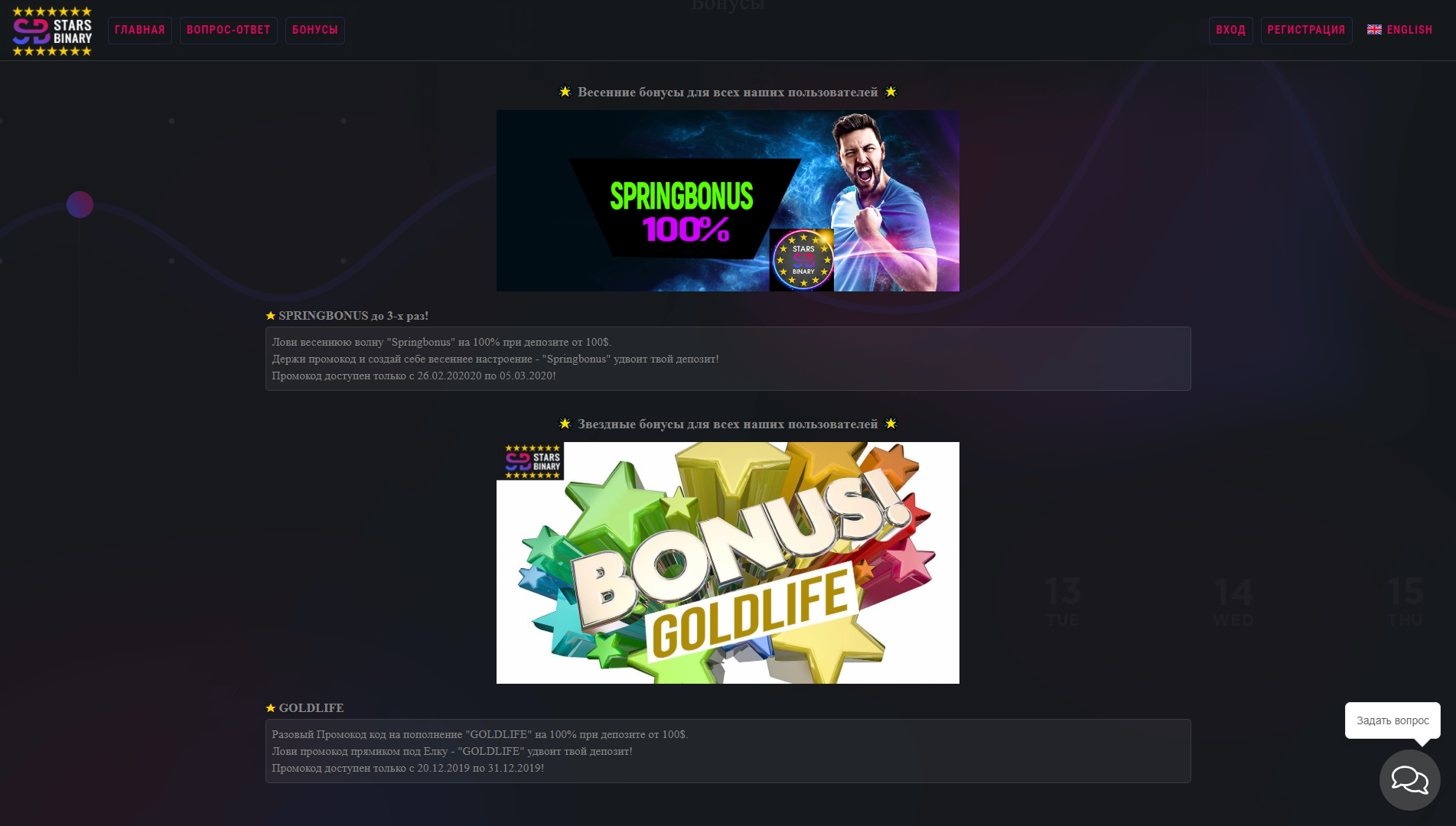 Торговые условия Starsbinary com